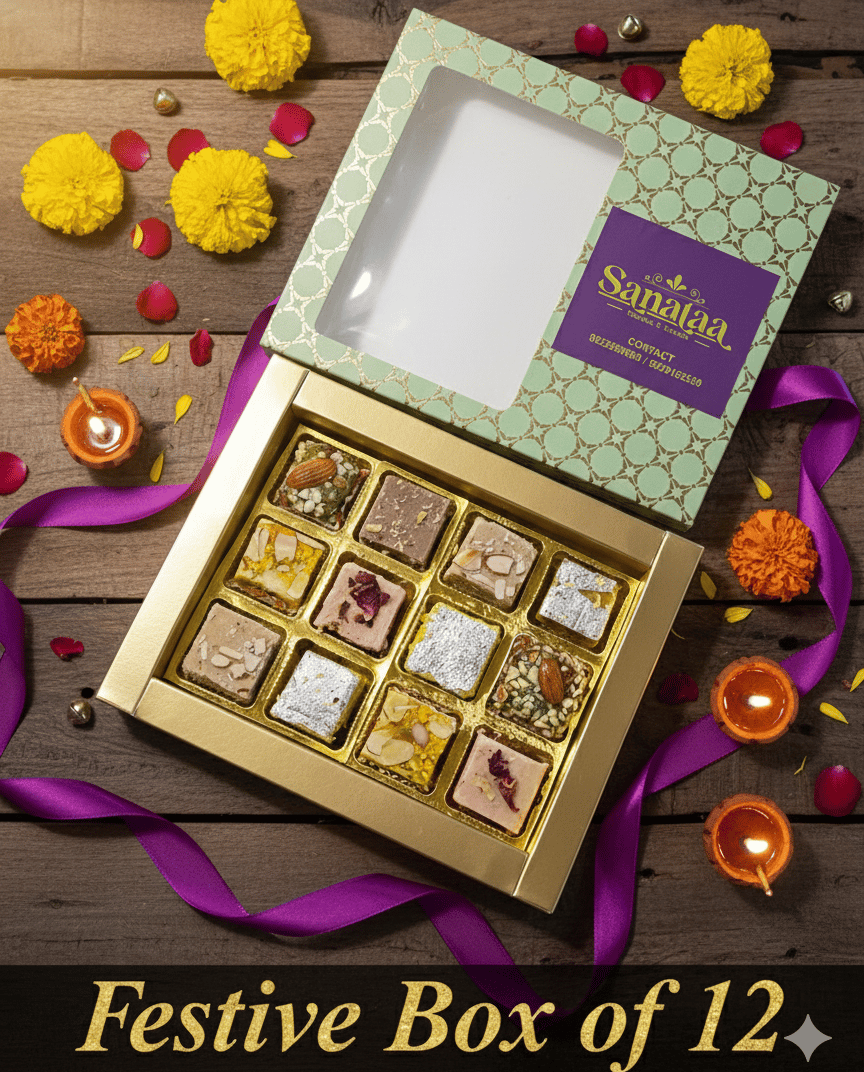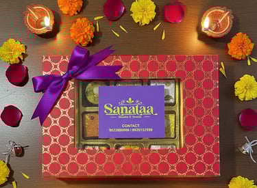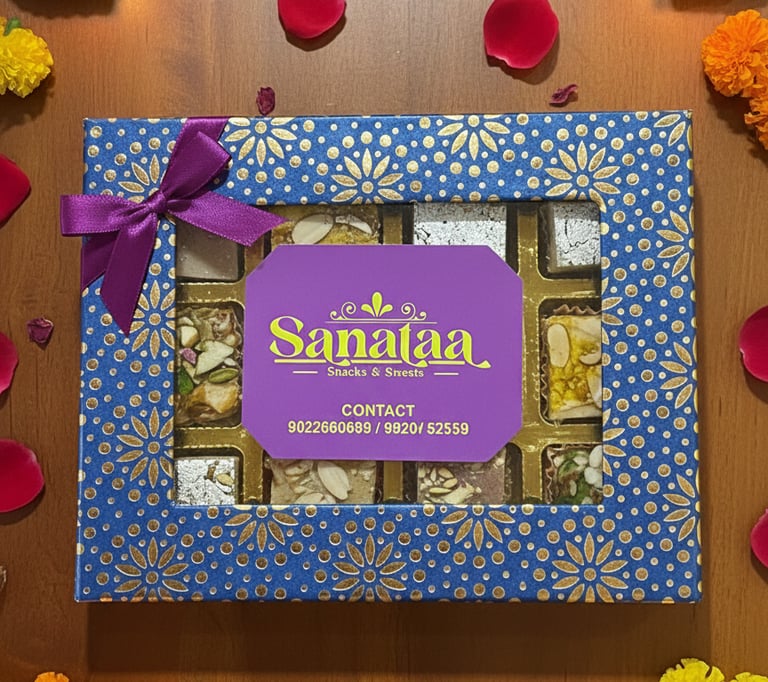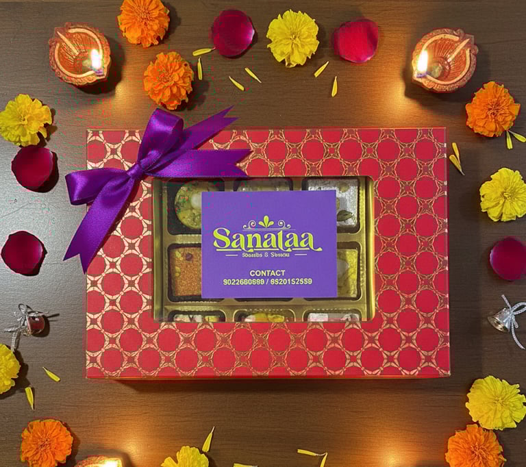 Sanataa Snacks & Sweets offers curated gift boxes featuring premium mithai, namkeen and dry-fruits collection.